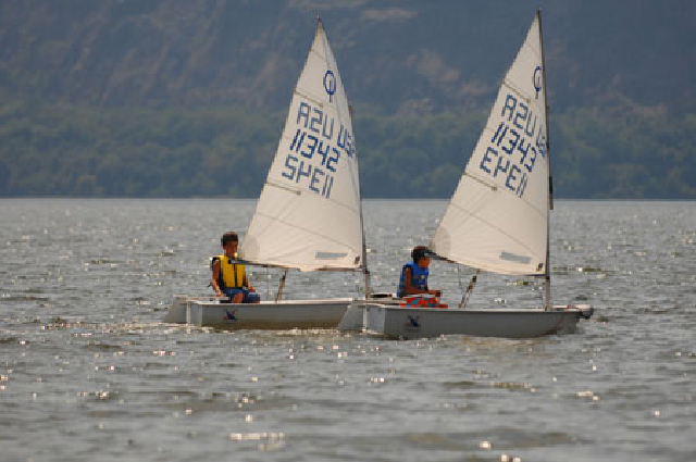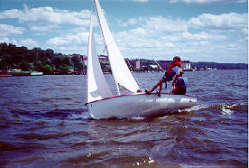 The 8 foot Optimist is the most popular sailboat for juniors. |